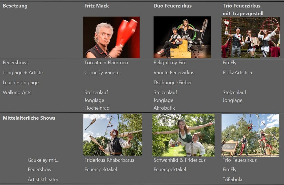 Sie buchen einen Künstler (oder eine Ensemble) und bekommen ein vielfältiges Programm. Das reduziert den Aufwand auf beiden Seiten.